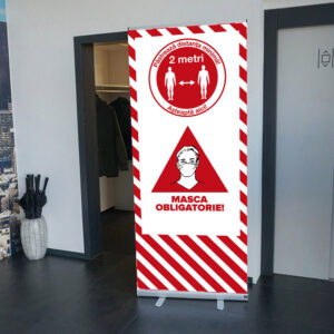 – L-shaped holder made of transparent plexiglass # 3 mm for mounting the dispenser to the aluminum leg and the A4 header – 210×297 mm, click frame.