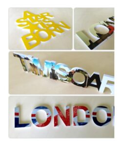 Realizata din Plexiglas transparent sau alb sau Dibond (aluminu)